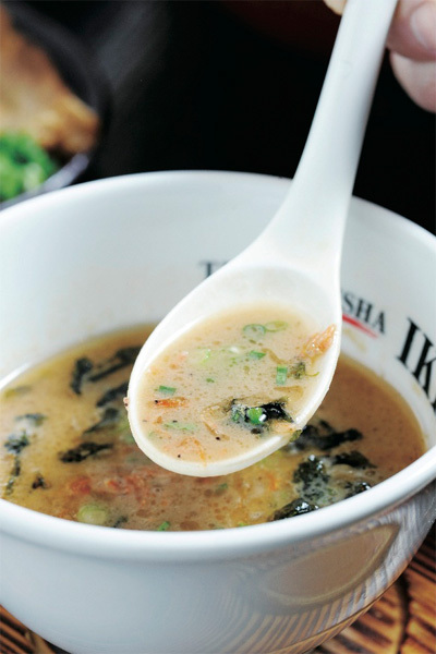 <スープ>干して炭火焼にされたトビウオはうま味が凝縮され、スープにもかすかに香ばしさを感じる。濃厚だが、食べ進むと意外とあっさりいただける。