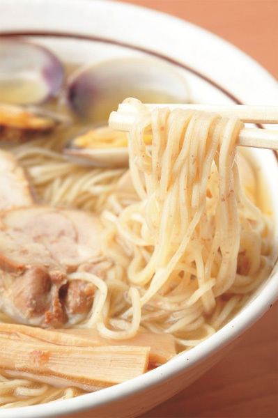 スープは追いアサリでうま味を重ねた、鶏と魚介のダブルスープ。貝柱やアジコはあえてわずかな苦みを引き出し、アサリはえぐみを出さないようダシが出きる一歩手前で火から下ろす。コシと香りの両立を目指した麺は、小麦の種類や比率、の太さを改良したことで、スープとの絡みも良くなった。ダシのとり方や味のバランス、麺とスープの相性など、それぞれの要素を積み重ねて生まれた一杯は、多くの人に愛されている。