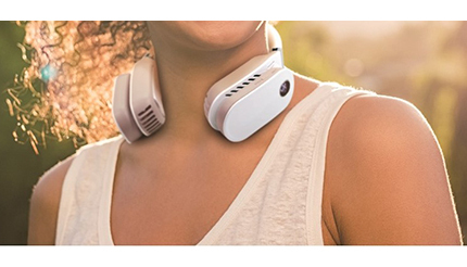 新製品は、夏も冬も1年中使える首掛け式のネッククーラー&ウォーマー。ボタン一つで温冷の切り替えが可能で、温度調整は各モード3段階で環境に合わせて使用できる。また、2600mAhのバッテリ内蔵なので、コードレスでどこでも使える。白と黒の2色を用意している。