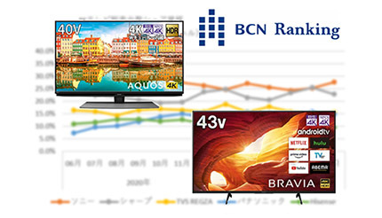 メーカーシェアでは逆転を許したシャープだが、シリーズ別の販売台数ランキングでは「4T-C40CL1」が首位を守り通した。2位にはソニーの「KJ-43X8000H」、3位には同じくソニーの「KJ-43X8500H」がランクインした。調子が上向いているパナソニックは「TH-43HX850」が売れ筋となっている。(BCN・大蔵大輔)