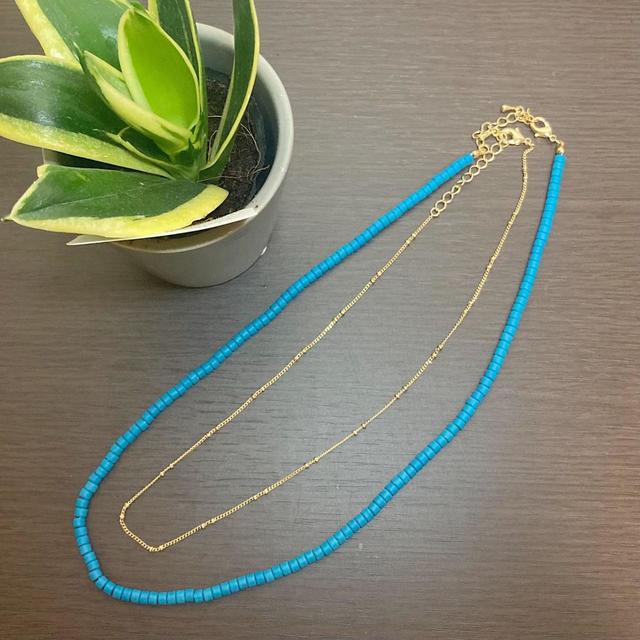 ビーズとゴールドチェーンの2連のネックレス。これ一つだけでオシャレになります。