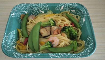 今までの一般的な冷凍パスタの調理手順といえば、外袋を取り出し、表示がある面を上にしてレンジ対応の皿にのせ、指定の時間で温める。温め終わったら蓋を破り、皿に盛り付ければ出来上がりだ。