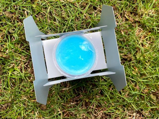 真ん中に先ほど紹介したダイソーの固形燃料を置いて、その上に鉄板やメスティンをのせて調理します。