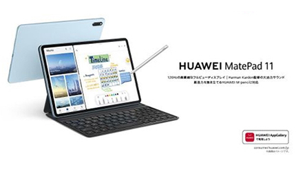 華為技術日本(ファーウェイ・ジャパン)は7月23日に、「HUAWEI MatePad」シリーズの新機種として、11インチの大画面タブレット端末「MUAWEI MatePad 11」のWi-Fiモデルを発売する。価格はオープンで、税込の実勢価格は5万4780円前後の見込み。