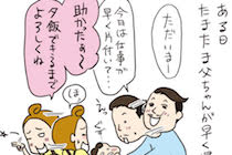 ただわが家は、話題のねんトレ・通称「ジーナ式」(#41話・#42話参照)をゆるゆると実践していたので、寝かし付け、といっても、真っ暗闇のなか、最初に軽くトントンと背中を叩いて「おやすみの儀式」をしたら、「今から寝るからな、頼むよ、もう今日は閉店だよ」と念を送りながらベビーベッドに寝かせるだけ。
