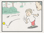 早速、桃太郎にボールの投げ方を伝授中。