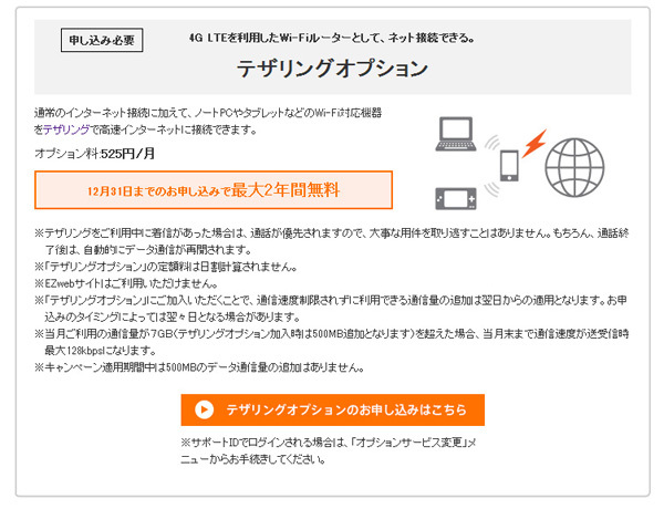 (注釈:KDDI「テザリングオプション」) 拡大画像表示