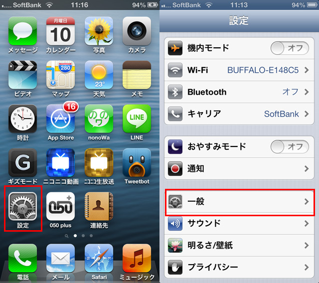 ホーム画面より「設定」→「一般」をタップします。