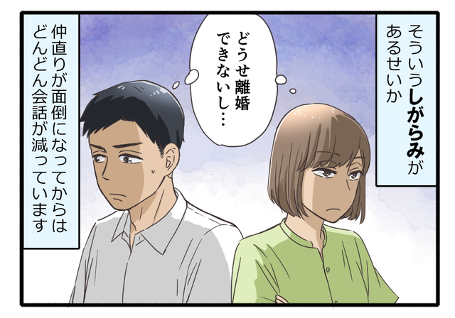 収入があり、離婚を考えられる状態なら我慢して一緒に生活しなくてもいいのではと思う人もいますが、実際は子どものことや世間体などが気になって動けない、という妻も多いものです。