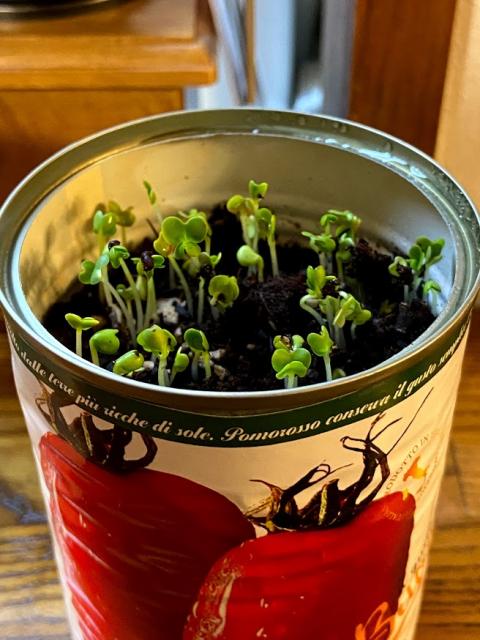トマト缶を利用した鉢植え