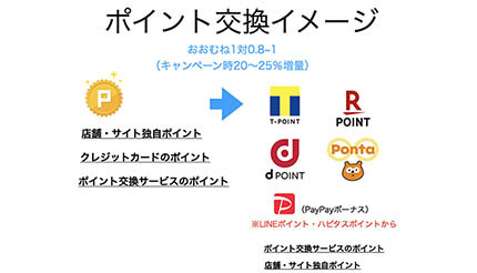 もともと楽天グループの共通ポイントだった名残りで、楽天ポイントは、一部のポイントサービスと相互交換可能だった。相互ではなく一方通行、楽天ポイントへの交換だけ可能なケースも多い。しかし、年々、オンライン・リアル共通の共通ポイントとしての性格が強まり、ポイント相互交換サービスの中止や交換レートの引き下げが昨年あたりから目立ってきた。
