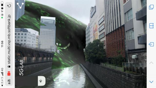 秋葉原の万世橋の中央から、スマートフォンをかざすと、かつてはそこにあった神田山の姿が映し出される。