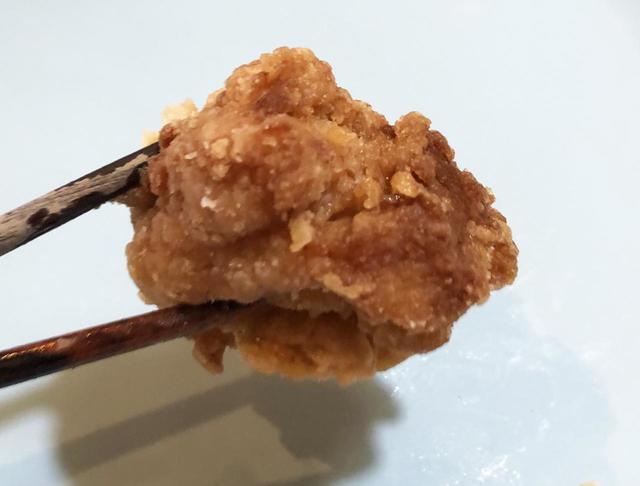 その一方、唐揚げの見た目は油度が強く、相応のパンチを予感させます。さっそくいただいてみましょう。