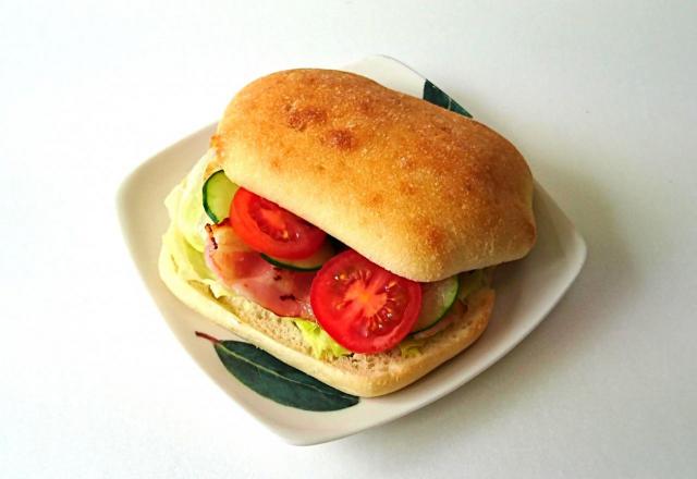 【カークランドシグネチャー トルタサンドイッチロール 12個 798円】ベーコン、レタス、トマトをサンドしてランチに