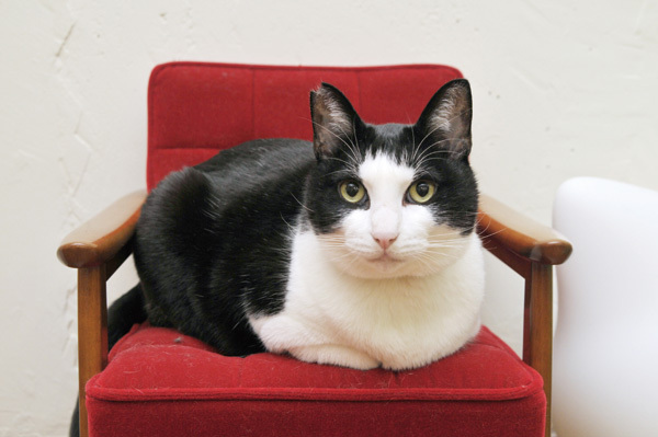 夜に猫を撮る場合、うつむいているときは避けよう。目にキャッチライトが入らないため、生き生きとした表情にならない。名前を呼ぶなどで注目を引いて少し顔を上げさせれば、天井のライトが目に写り込む=白いキャッチライトが入り、よりいっそうかわいらしさがアップする。