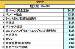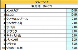 表を見ると、ソウルという大都市よりも済州島、中国も「万里の長城」がベスト3に入ったり、バンコク観光を象徴する、金ピカのお寺「ワットプラケオ」、世界遺産ハロン湾が上位を占めるなど、いずれの国や地域も代表的な有名観光地に訪れてほしいという回答が多かった。下位では、タイの三大祭りのひとつと言われているロイカトン祭り(ろうそく祭り)が開催される「ウボンラチャタニ」、ベトナム第三の都市「ダナン」などが挙げられており、少数ではあるが現地人のおすすめ観光地となっている。