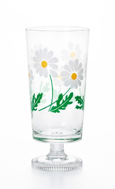 清楚でかわいらしいデザインの「野ばな」は、昭和アデリアのヒット商品「アリス」と並んで、当時人気の高かったシリーズです。昭和49(1974)年に贈答用のガラス食器セットとして販売をスタート。その翌年には単品も発売され、家庭用グラスウェアとして普及しました。白い花柄はよく見ると花びらが散っているものもあり、当時のデザイナーの遊び心が感じられます。