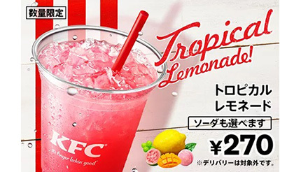 ケンタッキー・フライド・チキン(KFC)は、KFC公式Twitterアカウント(@KFC_jp)で開催を予定していた「トロピカルレモネード」発売記念キャンペーンの期間を変更した。