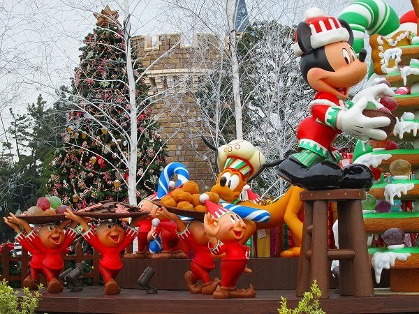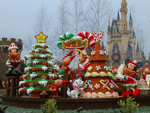 ミッキーとミニーがクッキーでツリーを作成しています♪