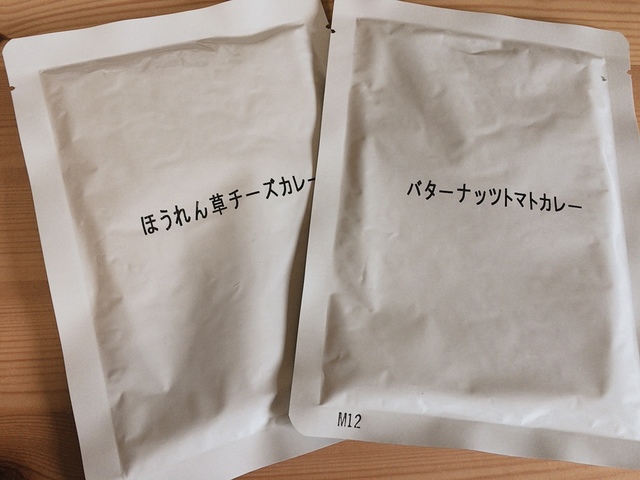 1つ目は「バターナッツトマトカレー」、2つ目は「ほうれん草チーズカレー」とのこと。