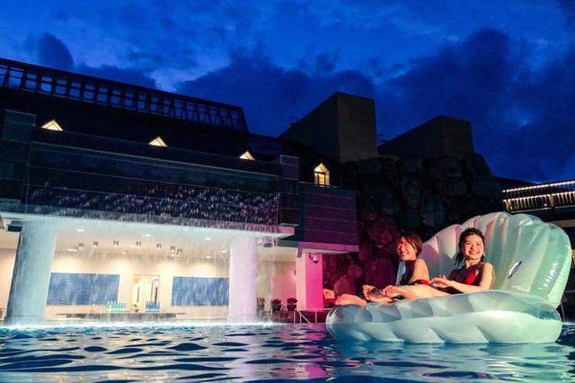 まるで映画やドラマで見るようなゴージャスな体験ができるのが、期間限定営業の「ナイトプール」。ライトアップされた非日常的な空間で、映えスポットとしても人気です。