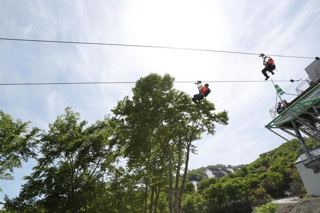 「ジップライン」は全長約170m。ジップツアーに比べると短く感じるかもしれませんが、こちらも国内ではトップクラスに入る長さなんです。