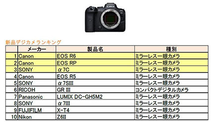 Map Camera・6月のデジカメ売上ランキング、新品1位はCanon EOS R6、中古1位はSONY α7II