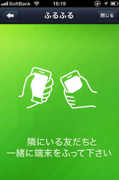 「ふるふる」をタップして画面のように相手の端末とぶつけ合います!それだけで友達に追加されています!