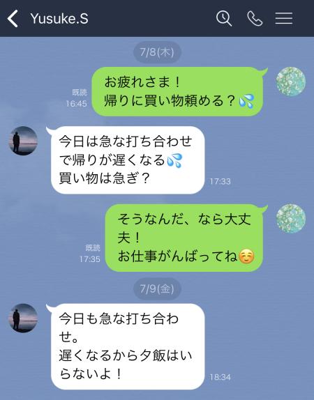 「夫が以前浮気をしていた時に急増したのが、『急な打ち合わせで帰りが遅くなる』という当日の夜のLINEでした。