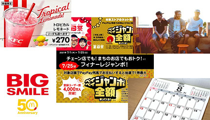 【話題のニュースダイジェスト】 2021年7月23日~29日の期間、「BCN+R」で注目を集めたのは、ケンタッキー・フライド・チキン(KFC)のトロピカルレモネード発売記念キャンペーンの期間変更だった。また、「夏のPayPay祭」の最終日や8月のカレンダーの祝日が移動していることも注目度が高かった。