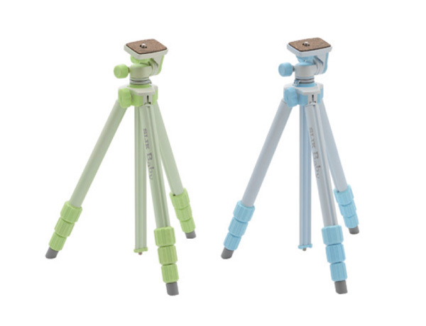 小型・軽量の三脚。かわいい見た目ながら、ミラーレス一眼に対応。金属パーツで高い剛性のため、望遠レンズを装着した状態でも扱える。2ウェイ雲台で縦撮影も可能。