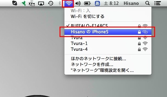 ●MacからiPhoneへ接続