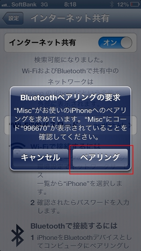 ■Bluetoothでテザリング(iPadやiPod touchと繋ぐ)