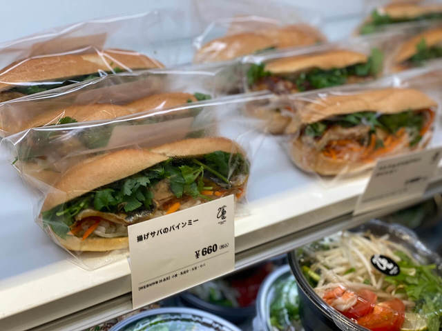 フライした鯖がたっぷり入っている、和風アレンジの「揚げ鯖のバインミー」。異色な感じもしますが、これがおいしい!