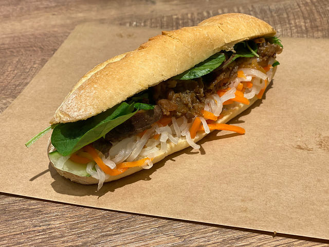 ベトナムといえば、やっぱりバインミー!パンに挟んだお肉と野菜、たっぷりパクチーが大人気です。大根や人参はなますになっているところが特徴的。