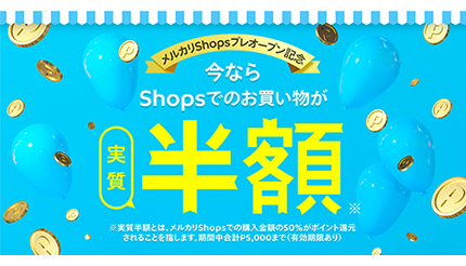 メルカリShops、プレオープンを記念した購入金額の50%をポイント還元するキャンペーンを実施