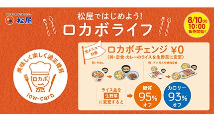 松屋フーズは8月10日から、同社が展開する「松屋」において、ライスを彩り生野菜に無料で変更可能な「ロカボチェンジ」をメニューに追加した。