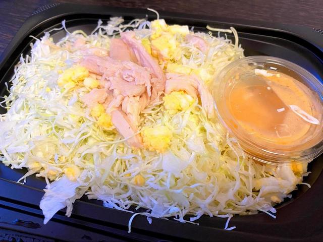 はじめ、キャベツの量に対してドレッシングが足りないように見えましたが、スパイスが効いた濃いめの味付けなので、足りないということはありませんでした。