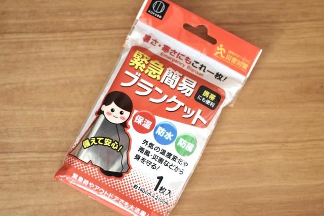 アルミ製の保温ブランケット。防水、防風の効果もあり、災害時に身を守ってくれるアイテムです。