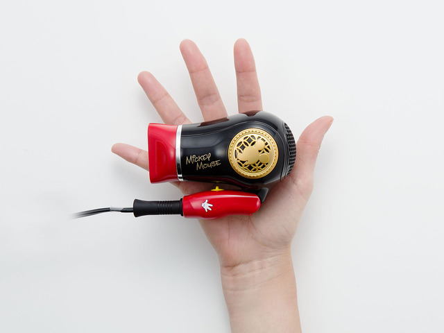 持ち手と集風器の部分の鮮やかなレッドと、本体のブラック、そしてオンオフのスイッチがイエローと、ミッキーマウスをイメージさせるデザインです。