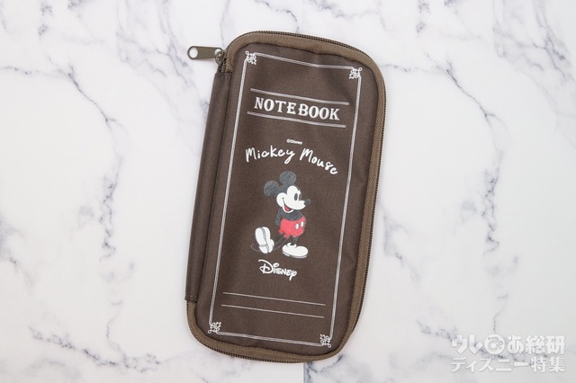 ミッキーのイラストが描かれたノート風のマルチポーチです。