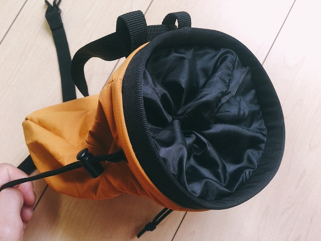 中身が出ないようにしたければ、横のヒモを引っ張れば巾着のように口が閉まります。