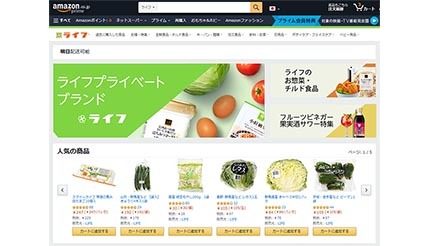 同サービスでは、対象エリアに在住する「Amazonプライム」会員なら、ライフの実店舗で取り扱っている野菜や果物、精肉、鮮魚をはじめ、「ライフプレミアム」や「スマイルライフ」といったライフのプライベートブランド商品など、数千点に及ぶ商品をAmazon.co.jpのウェブサイトやAmazonショッピングアプリを使用して、オンラインで注文できる。