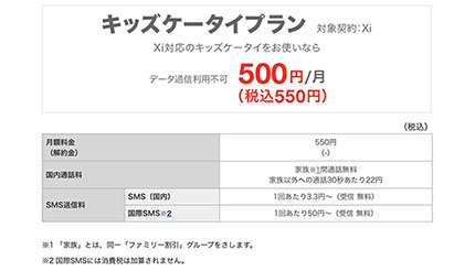 NTTドコモは8月18日から、月額550円のキッズケータイ向け料金プラン「キッズケータイプラン(Xi)」の申込条件を「申込時点で、利用者の年齢12歳以下であること」に緩和する。