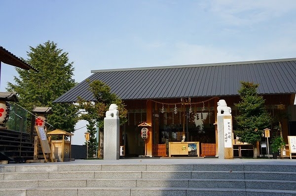 しっかりと神社のしるし、そして狛犬。