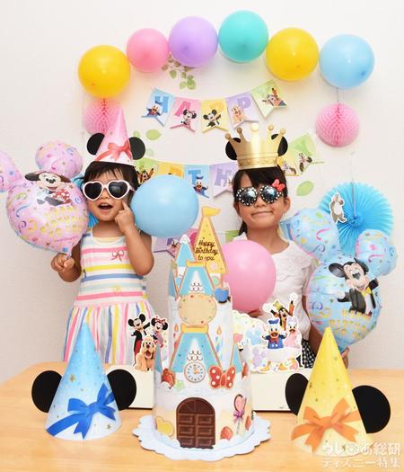キットの内容:ポップアップケーキ、ポップアップボード、ガーランド、バルーン(ミッキーマウスシェイプのバルーン×2、無地のゴムバルーン5色×2、他付属パーツ)、パーティーハット4種類、ハニカムボール(チップ、デール各1)、ペーパーファン×2