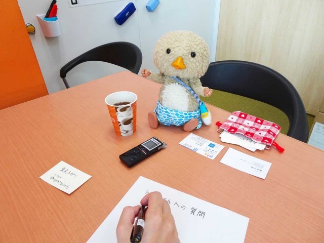 トガリくんは自分の名刺も持っているので、「mimot.」編集部の人と名刺交換
