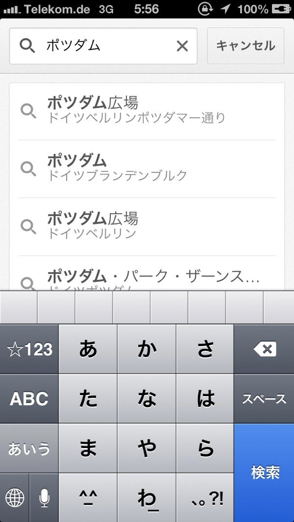 検索窓に「ポツダム」と入力します。すると候補に「ポツダム広場」が出てきたのでタップ。