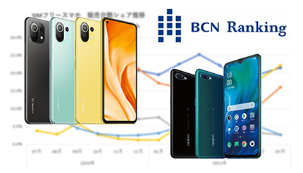 全国の主要家電量販店やECショップのPOSデータを集計する「BCNランキング」によると、2021年7月のSIMフリースマートフォン(スマホ)の販売台数は前年同月比82.4%にとどまった。前月に続き2ケタ減と低調で、メーカー別では淘汰が進んできている。