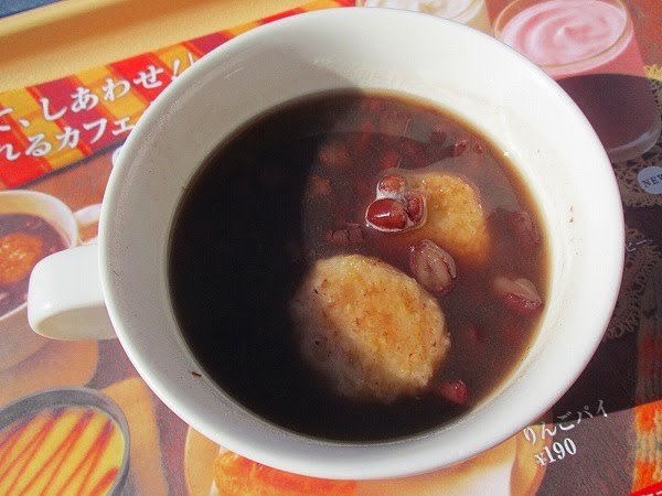 りんごパイ190円 玄米餅のおしるこ280円 さつま金時のあったかプリン260円
